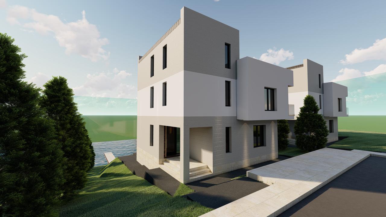 Vilă premium cu ieșire la lac, 4 camere, 2 băi, 2 grupuri sanitare, finisaje de top, în complex securizat cu acces la ponton. Loturi între 430-830 mp.